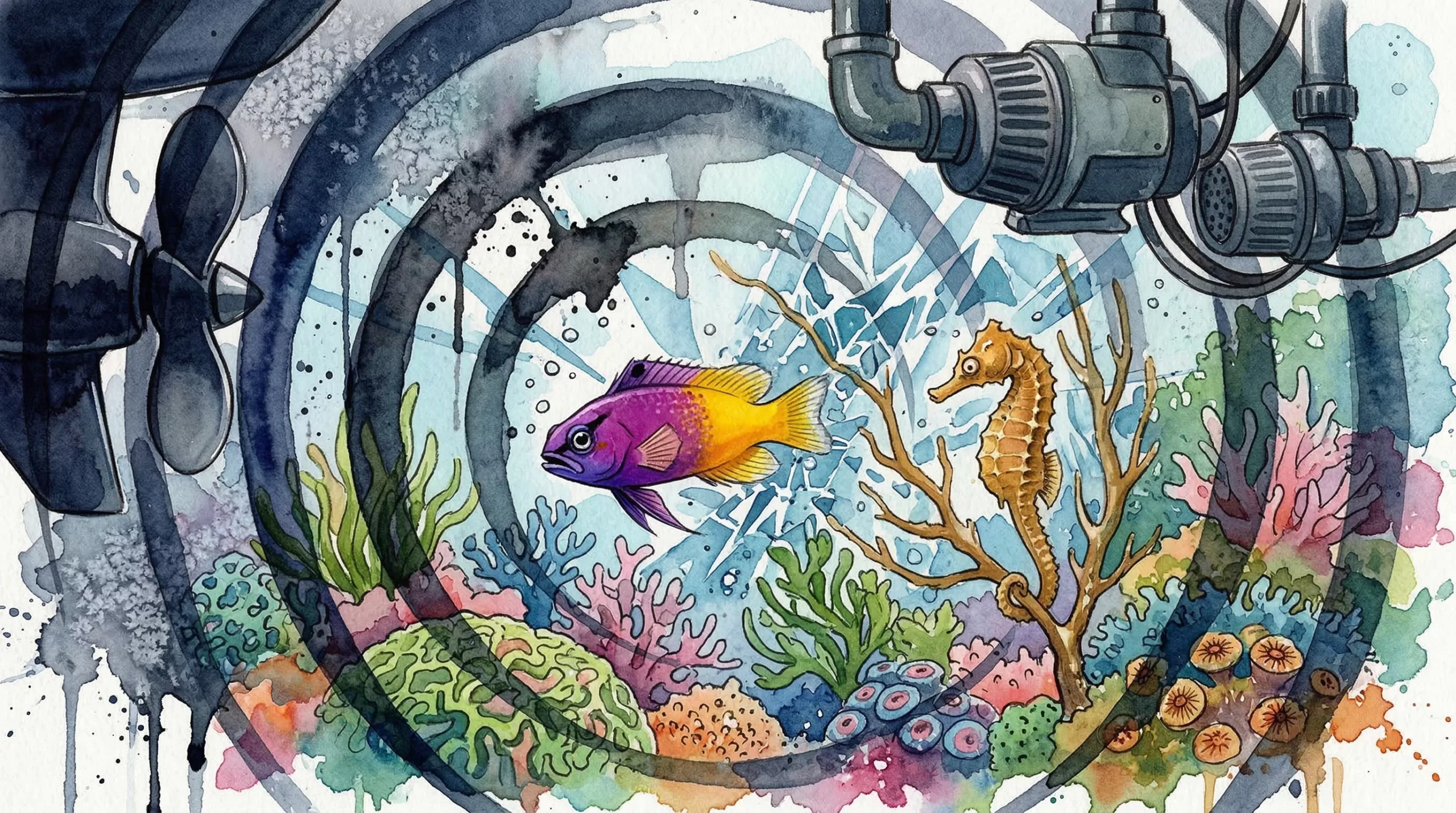 Em aquários, laboratórios e instalações de aquicultura, o ruído é frequentemente gerado por várias fontes, incluindo bombas, pedras difusoras de ar e filtros de água. De forma geral, os aquários de água salgada tendem a ser mais ruidosos do que os de água doce. Isso acontece porque eles exigem mais circulação e filtragem da água, o que significa mais equipamentos e, claro, mais ruído. Além disso, com o tempo, o desgaste dos aparelhos pode fazer com que o barulho aumente ainda mais.